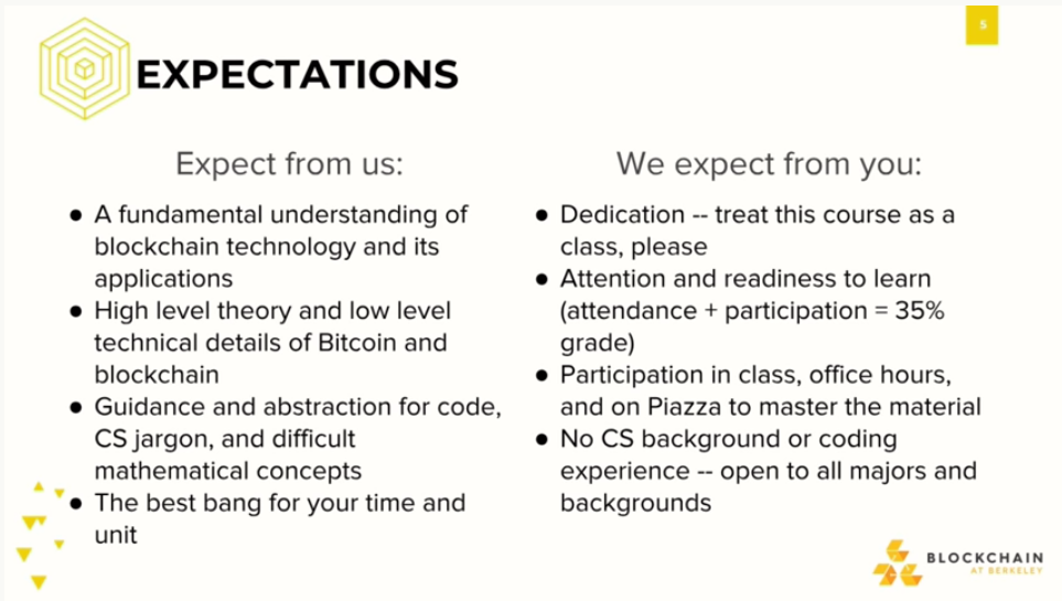 Blockchain Fundamentals started off as the Cryptocurrency DeCal (Democratic Education at Cal, student run) course on UC Berkeley campus in Fall 2016, taking inspiration from existing courses, videos, and textbooks. From the beginning, the vision was to lower the barrier of entry and provide a survey into the blockchain and cryptocurrency space – to explain concepts from the ground up, as clearly and concisely as possible.